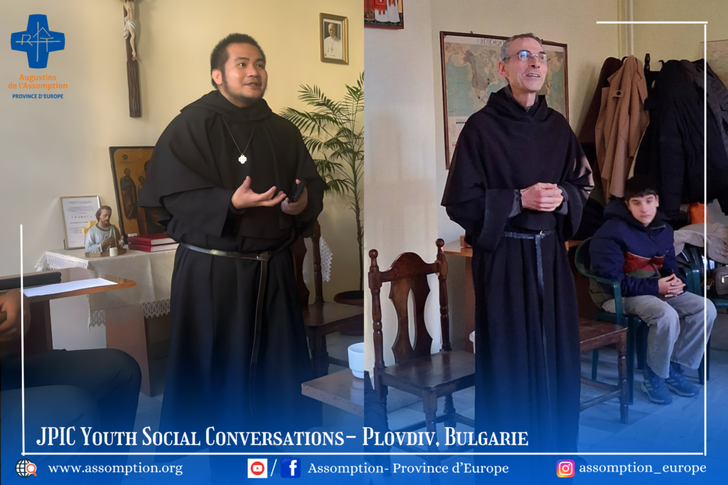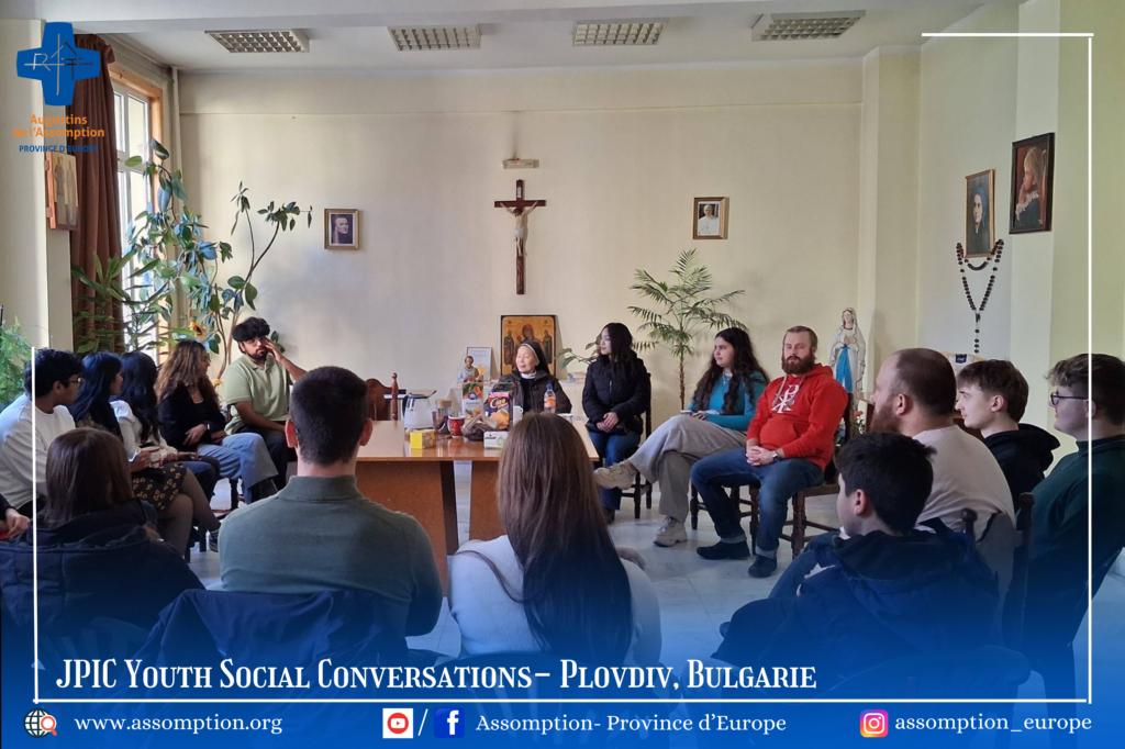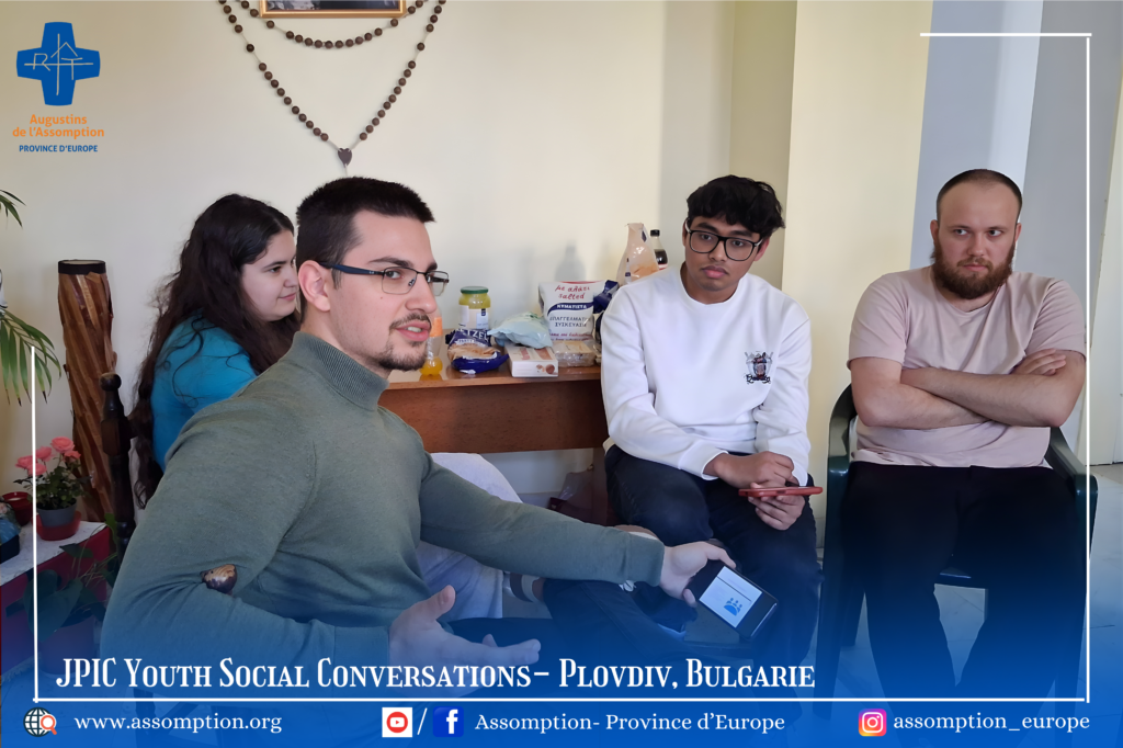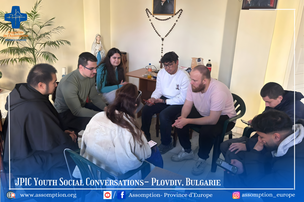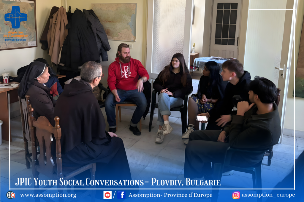 Cette première rencontre inaugure une série mensuelle de conversations sociales autour de la Justice, de la Paix et de l’Intégrité de la Création (JPIC). Pour ce mois-ci, nous mettons en lumière la force des jeunes et leur participation active dans la société. Cette initiative est le fruit d’une belle collaboration entre les Assomptionnistes et deux organisations de jeunesse à Plovdiv : l’une représentant la jeunesse bulgare et l’autre des étudiants internationaux. Ensemble, faisons résonner les voix de l’avenir et construisons un monde plus juste, solidaire et engagé.